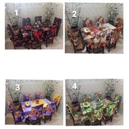 - taplak meja makan 120x200- sarung sandaran kursi 6- sarung tempat tisuBahan katun disperse#setsarungkursi#taplakmejamakan#sandarankursi#setmeja