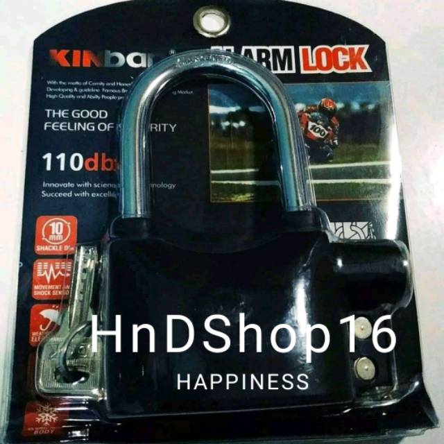 Gembok Alarm Super Kuat - Ring Panjang + Gratis Kinbar Original Gembok Alarm Super Kuat - Ring Panjang 1 Pcs..Gembok Alarm merupakan suatu produk inovasi yang membuat kita merasakan lebih aman dan nyaman, karena produk ini berfungsi memberikan kita peringatan atau tanda akan hal-hal yang tidak diinginkan. Gembok Alarm ini cocok sebagai kunci pengaman. Apabila terkena guncangan atau dibuka paksa, Gembok ini akan berbunyi.Gembok Alarm adalah gembok yang berfungsi sebagai Lock atau pengunci yang mempunyai kekuatan setara dengan alarm mobil, jadi sangat cocok untuk keamanan motor, pintu pagar, gudang / toko dan lain-lain.SPEC:- Sistem Alarm akan aktif jika terkena getaran atau pukulan- Kekuatan Suara sistem alarm 110dba, setara dengan bunyi alarm mobil- Anak kunci kunci tidak dapat diduplikasi- Alarm otomatis akan berhenti setelah 35 detik dalam posisi tidak terkena getaran.- Baterai lock dari dalam dan tidak bisa dibuka saat gembok terkunci- Umur Baterai bisa bertahan lama- Disediakan Baterai Cadangan dalam setiap pembelian 6 Pcs, type LR44.Cara Aktifkan Alarm:Buka gembok pakai kuncinya, tarik besi pengaman (yang warna stainless melengkung) keluar, lalu balik atau putar posisinya dan masukkan kembali dan akan terdengar bunyi "Beep", nah itu artinya Alarm pada gembok sudah aktif. Jadi jika ada getaran atau benturan pada gembok maka alarm akan berbunyi.Apabila gembok tidak dipakai dan tidak mau mengaktifkan Alarm, maka lakukan kebalikan petunjuk di