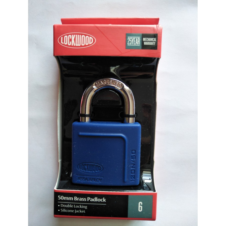 Gembok LOCKWOOD 120N/50Gembok Lockwood AustraliaMaterial Body : solid BrassMaterial sahckle : hardened steelLapisan body : siliconeLebar body : 50 mmTinggi shackle : 32 mmdiameter shackle : 9.5 mmcocok untuk rumah toko ruko gudang mobil box
