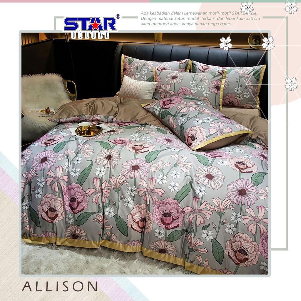 INFORMASI PRODUK*Sprei Pakai Motif seperti motif bedcover untuk yg pakai kombinasi lain harap di tulis di note* Nama: Sprei Set* Bahan: Katun Viscose (cottonviscose)* Warna: 95%* Fitur: Sprei Pakai Karet Di keempat sudut nya* Sarung Bantal Model list (bukan Frame) untuk frame bisa atc di penambahn frame Size Chart*Sprei 90x200x20cm Sarung Bantal 1pc 48x68cm Sarung Guling 1pc 35x100cm*Sprei 100x200x20cm/ No-4 Sarung Bantal 1pc 48x68cm Sarung Guling 1pc 35x100cm*Sprei 120x200x20cm/ No-3 Sarung Bantal 1pc 48x68cm Sarung Guling 1pc 35x100cm*Sprei 140x200x20cm Sarung Bantal 2pc 48x68cm Sarung Guling 2pc 35x100cm*Sprei 160x200x20cm/ No-2 / Queen Sarung Bantal 2pc 48x68cm Sarung Guling 2pc 35x100cm*Sprei 180x200x20cm/ No-1 / King Sarung Bantal 2pc 48x68cm Sarung Guling 2pc 35x100cm*Sprei 200x200x20cm / Extra King Sarung Bantal 2pc 48x68cm Sarung Guling 2pc 35x100cmPENAMBAHANTinggi sprei -->15.000/5 Cm2 Sarung Bantal -->50.0002 Sarung guling -->50.0001 Sarung Bantal 1 Sarung guling--> 50.000Karet keliling --> 20.000Elastick Lock -->10.000Sarung Bantal Cinta --> 45.000CATATAN:* Bisa Tambah Tinggi di menu penambahan* Toleransi Ukuran 1-3 cm karena pengukuran manual.* Jika Anda memiliki pertanyaan, silahkan hubungi kami, kami akan menyelesaikannya untuk Anda, terima kasih.* Terima Reseller dan dropshiper atau yg ingin belajar jadi reseller kami siap bantu.( Dengan Harga Khusus)Jika Masih ada keraguan silakan bertanya#spreipolos#spreikarakter#spreikasur#spreiantiair#spreianak#spreialoha#spreiantigeser#spreicipadu#spreicustom#spreijepang#spreidoraemon#spreiesra#spreiembos#spreiestetik#spreipr