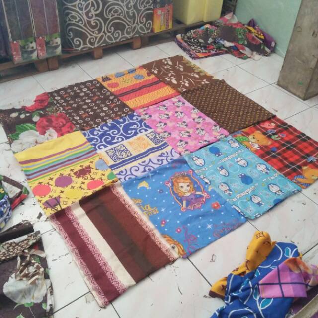 Kain ini sudah dijahit, pasti ada resletingnya, kira-kira panjang resletingnya 20cm, cocok untuk kalian yang ingin membuat bantal/guling sendiri dengan menyesuaikan kepadatan isi bantalnya atau cocok untuk kalian yg ingin membuka usaha penjualan bantal guling..cara pembuatan bantal:1.buka resletingnya2.masukkan kapuk/silicon/dakron/atau apapun yg empuk ke dalam kain3 tutup resletingnya4.Selesai... Bantal impian kalian telah siap dipakai..Ket: kalian bisa mengatur kepadatan atau kelenturan bantal/guling kalian sesuai keinginan kalianUkuran: kain bantal bantal -+ 63cm x 43cm,,, panjang kain guling 90cm dengan diameter lingkaran sesuai standar (mohon dimaklumi jika ukurannya kurang 3cm atau lebih 3cm, karena ini dikerjakan oleh tangan manusia jadi kadang ada miringnya sedikit waktu pemotongan)Warna: bervariasi (bisa request warna cewek/cowok/netral) silahkan cek out dulu untuk memilih warnanyaJenis: kain lokal, semi katun, kapas (campur tergantung st