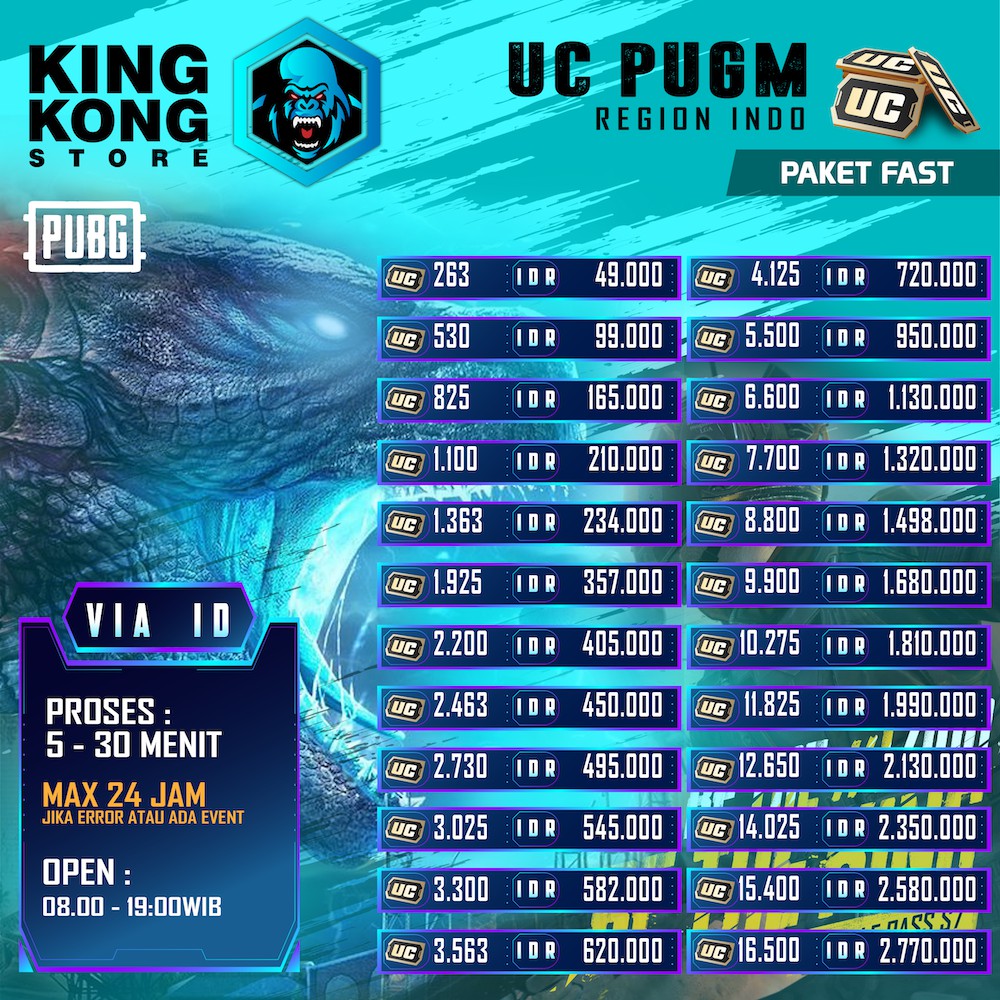 Name: Top Up Uc Pubgm Via Id Region Indo Paket Fast