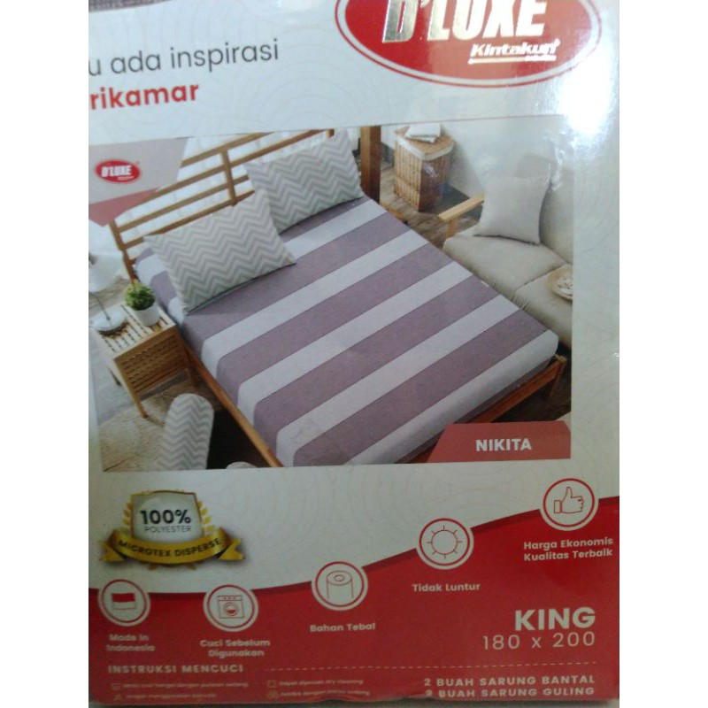 Sprei D'luxe KintakunIsi :2 Sarung Bantal2 Sarung GulingKeunggulan :1. Halus2. Tidak Mudah Luntur3. Bahan Tebal dan Lebih Nyaman4. Motif 3
