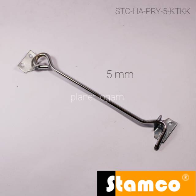 Hak Angin/Kait Jendela Polos 5 mm K. Tekuk/K. Oval Uk. 8" [STAMCO]Kode Produk: STC-HA-PRY-5-KTKKDeskripsi:- Hak Angin untuk Jendela- Kait untuk Jendela- Penahan Jendela- Model Polos- Kaki Tekuk/Kaki Oval- Besi As Tengah 5 mm- Termasuk Sekrup Lengkap- Merek Stamco- Bahan Besi- Kuat dan Tahan Lama- Cocok untuk Menahan JendelaWarna:- Putih SatinPanjang: 185 mmLebar: 30 mmTinggi: 25 mmBerat: 48Tersedia ukuran 5 mm dan 6 mmKlik untuk cek ukuran 6 mm >Untuk model ukir bisa cek >Stamco merupakan brand unggulan kategori peralatan tukang dan aksesoris rumah di Indonesia.NB: MENERIMA RESELLER. SILAHKAN MENGIRIMKAN PESAN UNTUK INFO LEBIH LA